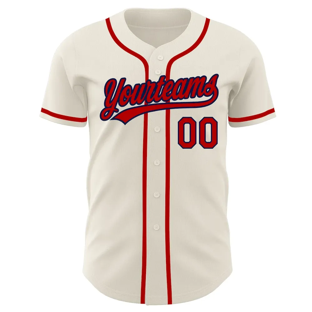 Custom Cream Red-Navy Authentic Baseball Jersey