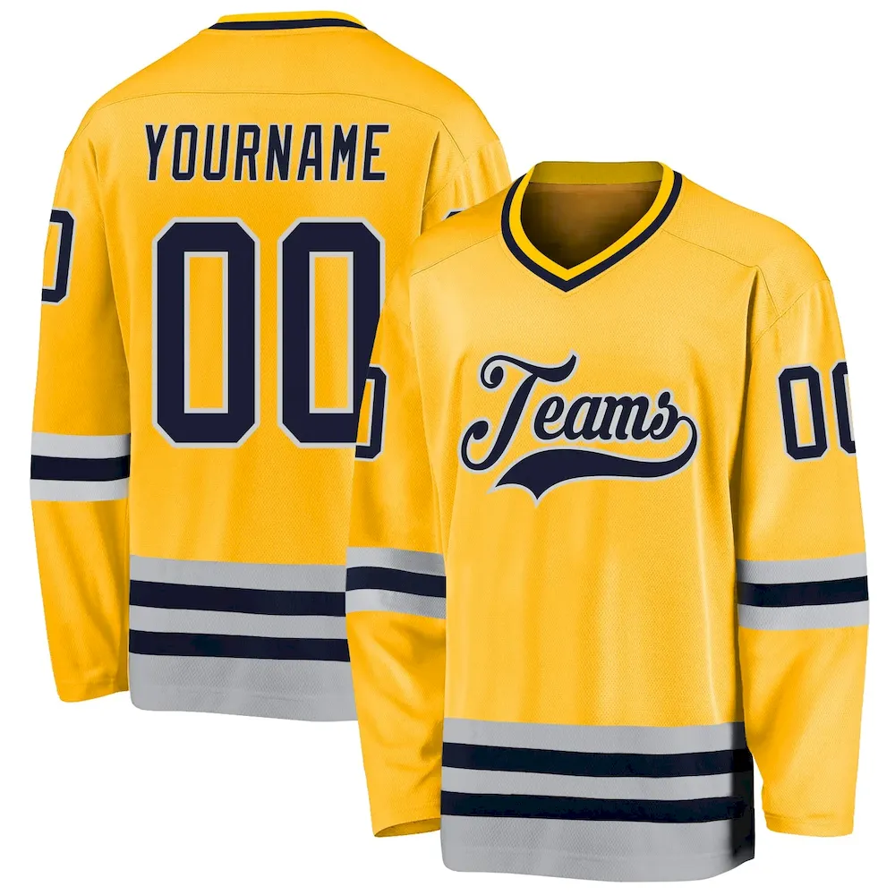Custom Gold Navy-Gray Hockey Jersey