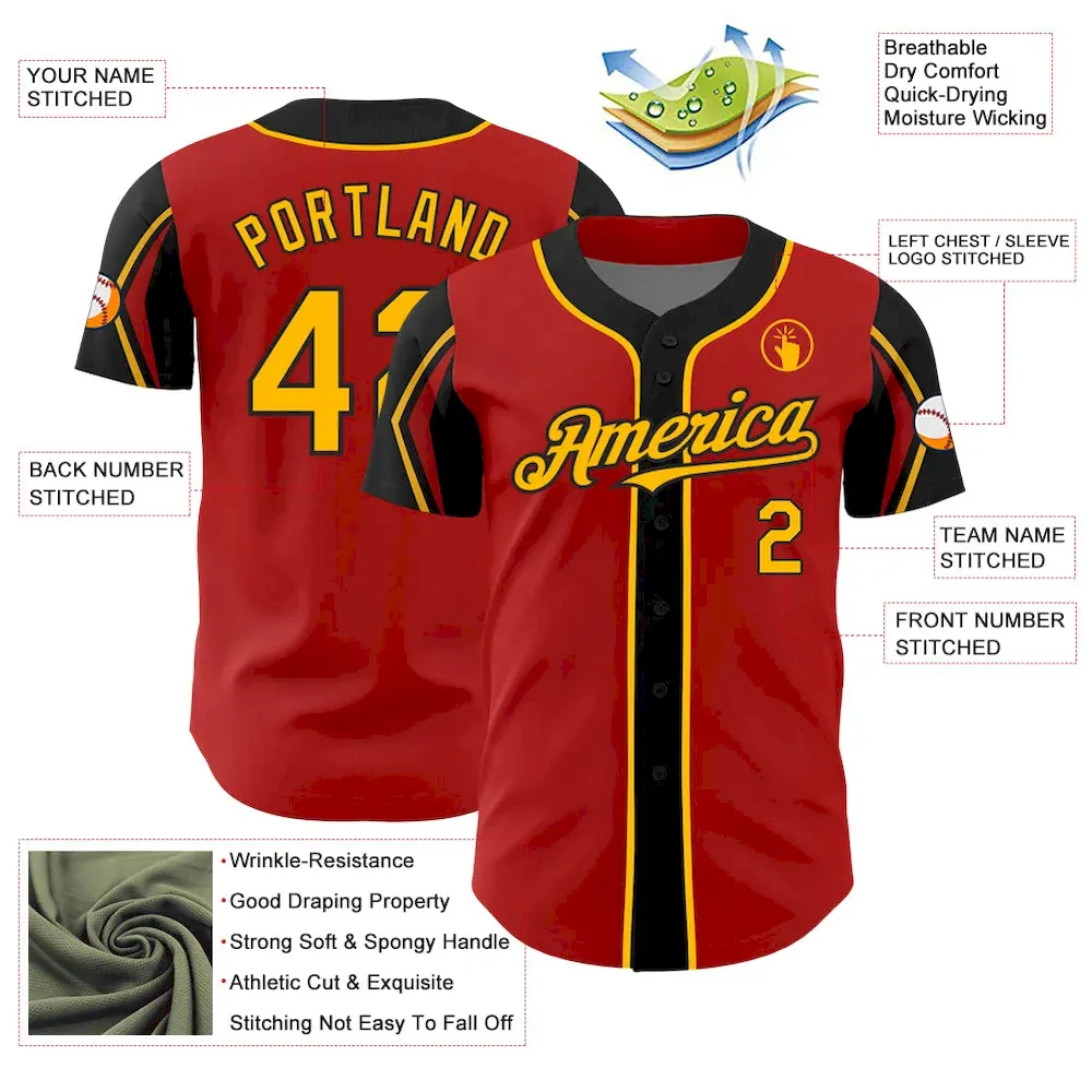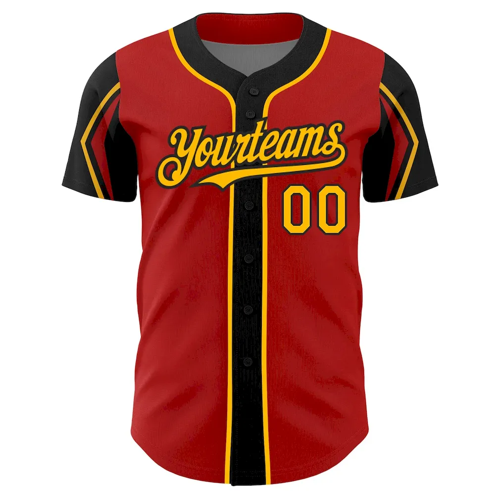 Custom Red Gold-Black 3 Colors Arm Shapes Authentic Baseball Jersey