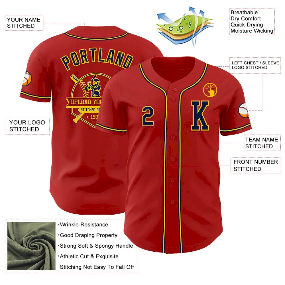 Custom Red Navy-Yellow Authentic Baseball Jersey