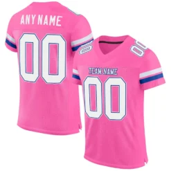 Custom Pink White-Royal Mesh Authentic Football Jersey
