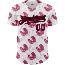 Custom White Maroon-Black 3D Pattern Design Tropical Anthurium Flower Authentic Baseball Jersey