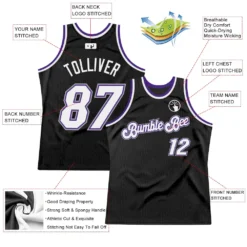 Custom Black White-Purple Authentic Throwback Basketball Jersey