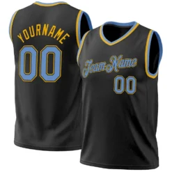 Custom Black Light Blue-Gold Authentic Throwback Basketball Jersey