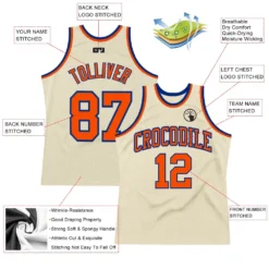 Custom Cream Orange-Royal Authentic Throwback Basketball Jersey