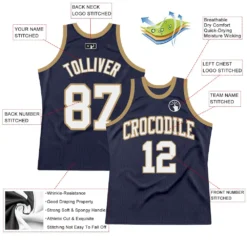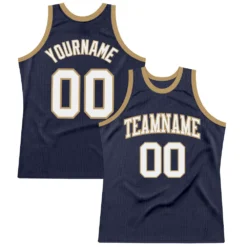 Custom Navy White-Old Gold Authentic Throwback Basketball Jersey