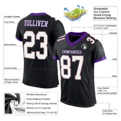 Custom Black White-Purple Mesh Authentic Football Jersey