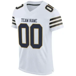 Custom White Navy-Old Gold Mesh Authentic Football Jersey