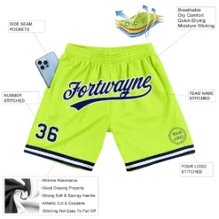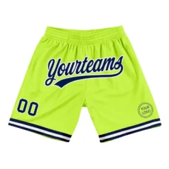 Custom Neon Green Navy-White Authentic Throwback Basketball Shorts