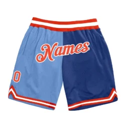 Custom Light Blue Orange-Royal Authentic Throwback Split Fashion Basketball Shorts