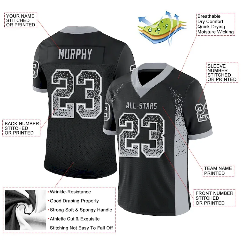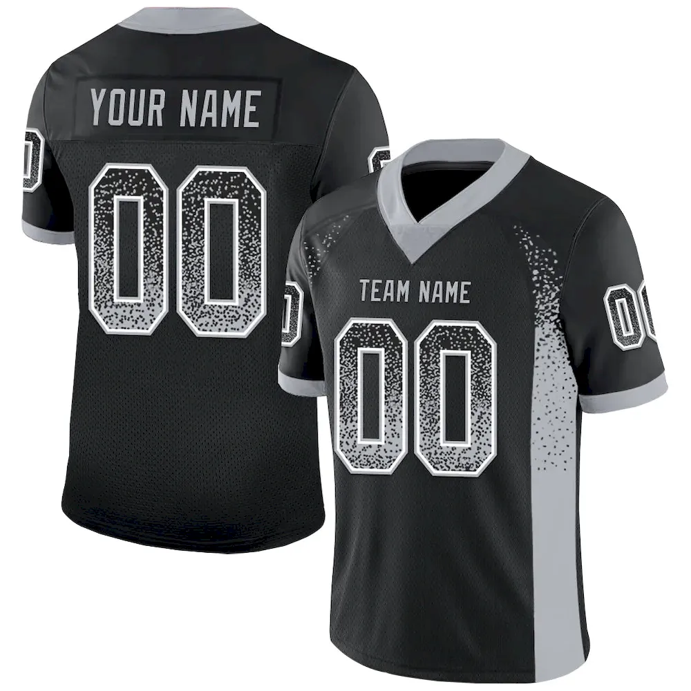 Custom Black Gray-White Mesh Drift Fashion Football Jersey