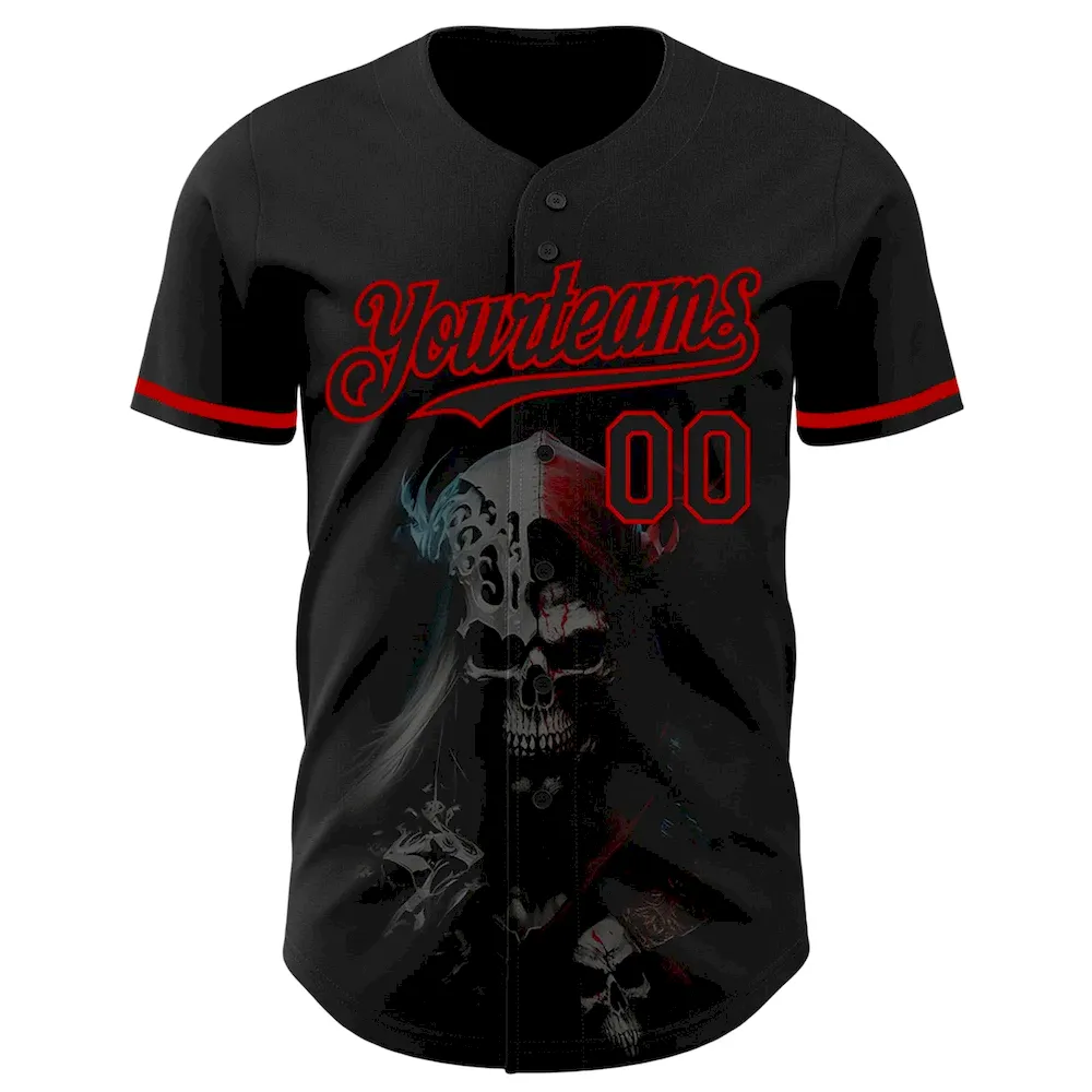 Custom Black Red 3D Skull Fashion Authentic Baseball Jersey