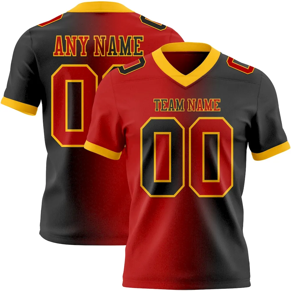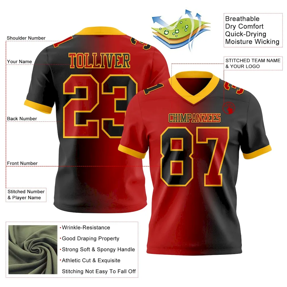 Custom Black Red-Gold Mesh Authentic Gradient Fashion Football Jersey
