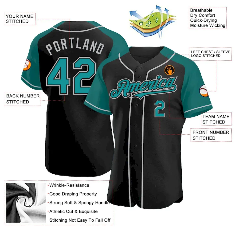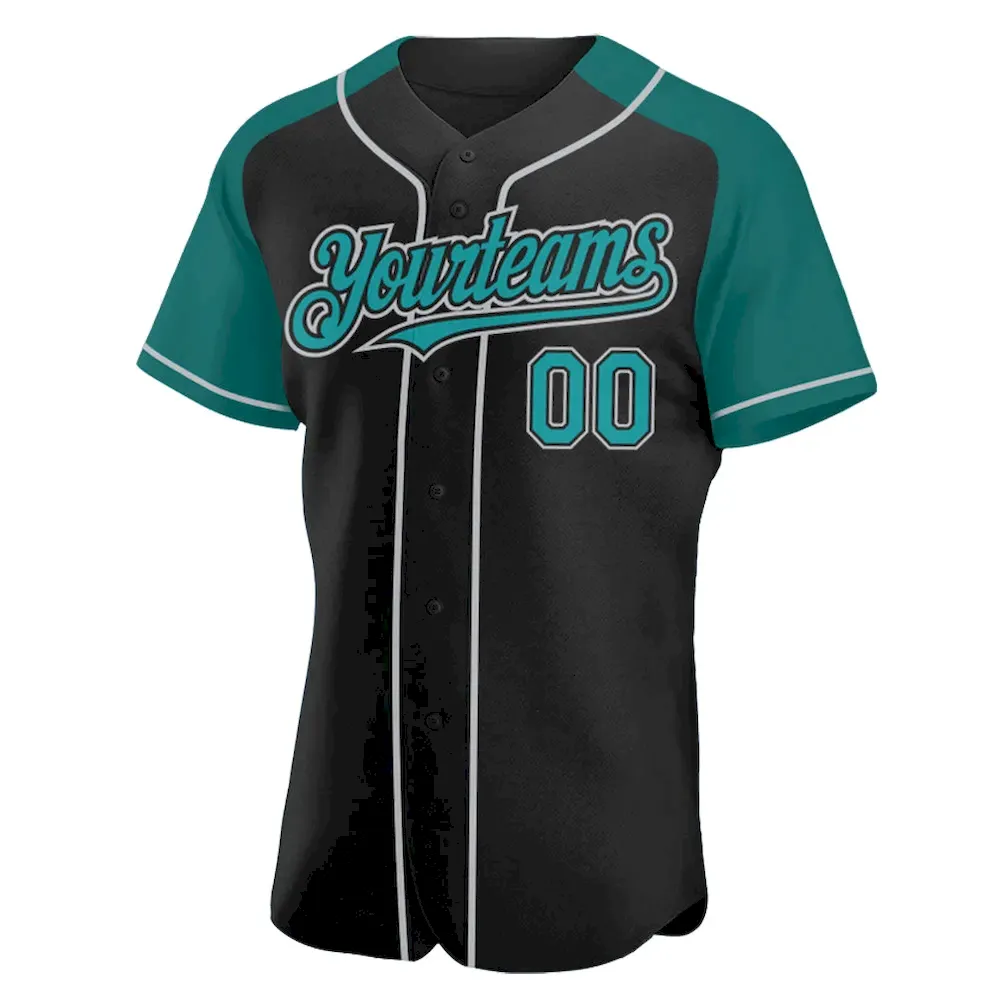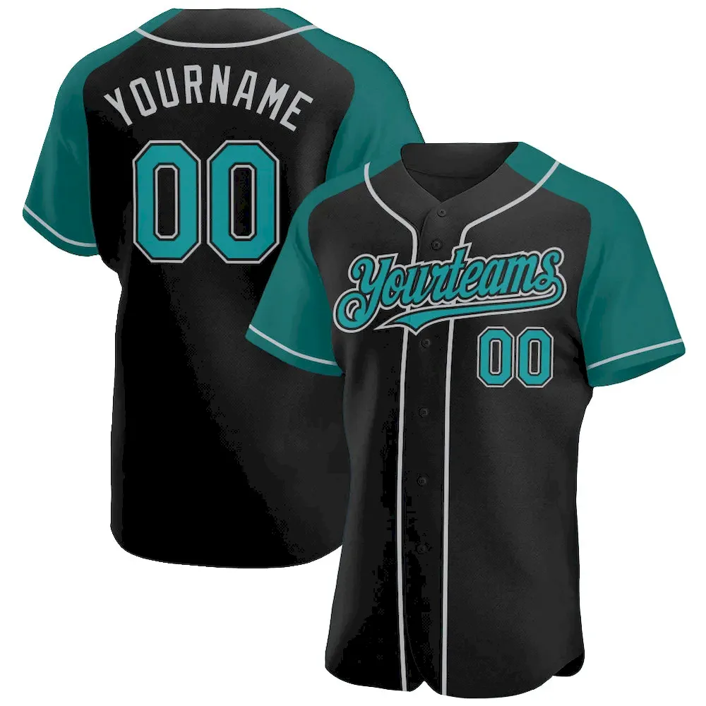 Custom Black Teal-Gray Authentic Raglan Sleeves Baseball Jersey