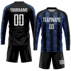 Custom Black White-Royal Sublimation Soccer Uniform Jersey