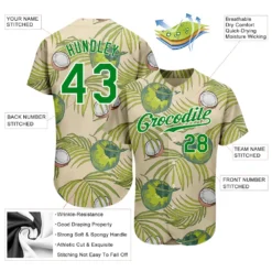 Custom Cream Grass Green-White 3D Pattern Design Coconuts And Leaves Authentic Baseball Jersey