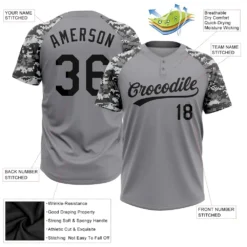 Custom Gray Black-Camo 3D Pattern Two-Button Unisex Softball Jersey