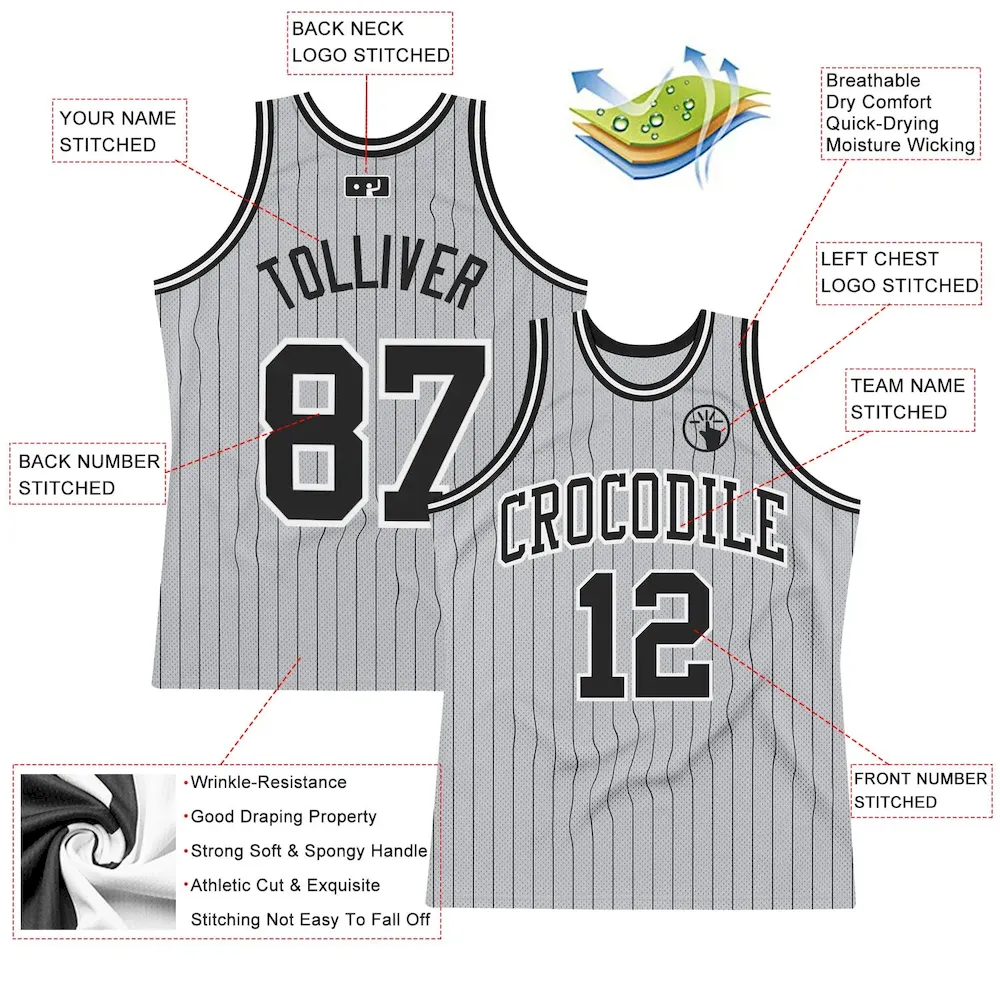 Custom Gray Black Pinstripe Black-White Authentic Basketball Jersey