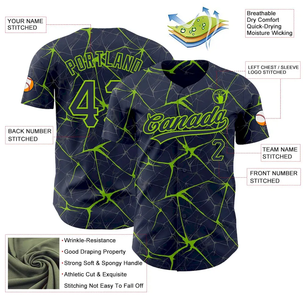 Custom Navy Neon Green 3D Pattern Design Abstract Network Authentic Baseball Jersey
