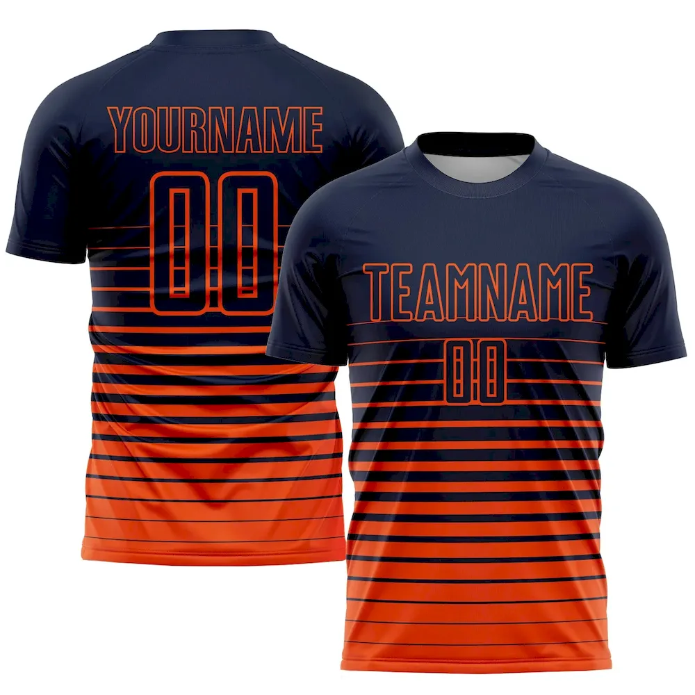 Custom Navy Orange Pinstripe Fade Fashion Sublimation Soccer Uniform Jersey