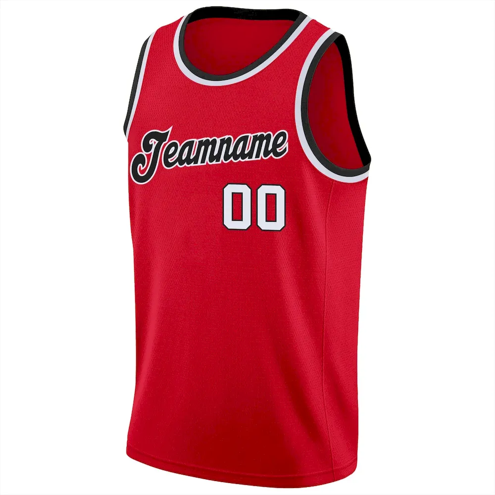 Custom Red White-Black Round Neck Rib-Knit Basketball Jersey