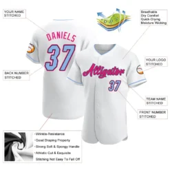 Custom White Light Blue Black-Hot Pink Authentic Baseball Jersey