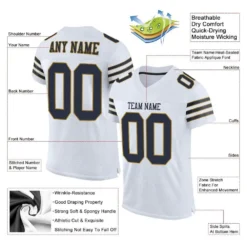 Custom White Navy-Old Gold Mesh Authentic Football Jersey